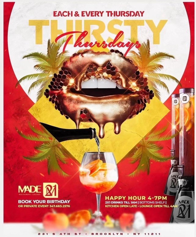 Join us at Made 21 Lounge Williamsburg located at 231 S 4th St Brooklyn, NY 11211
